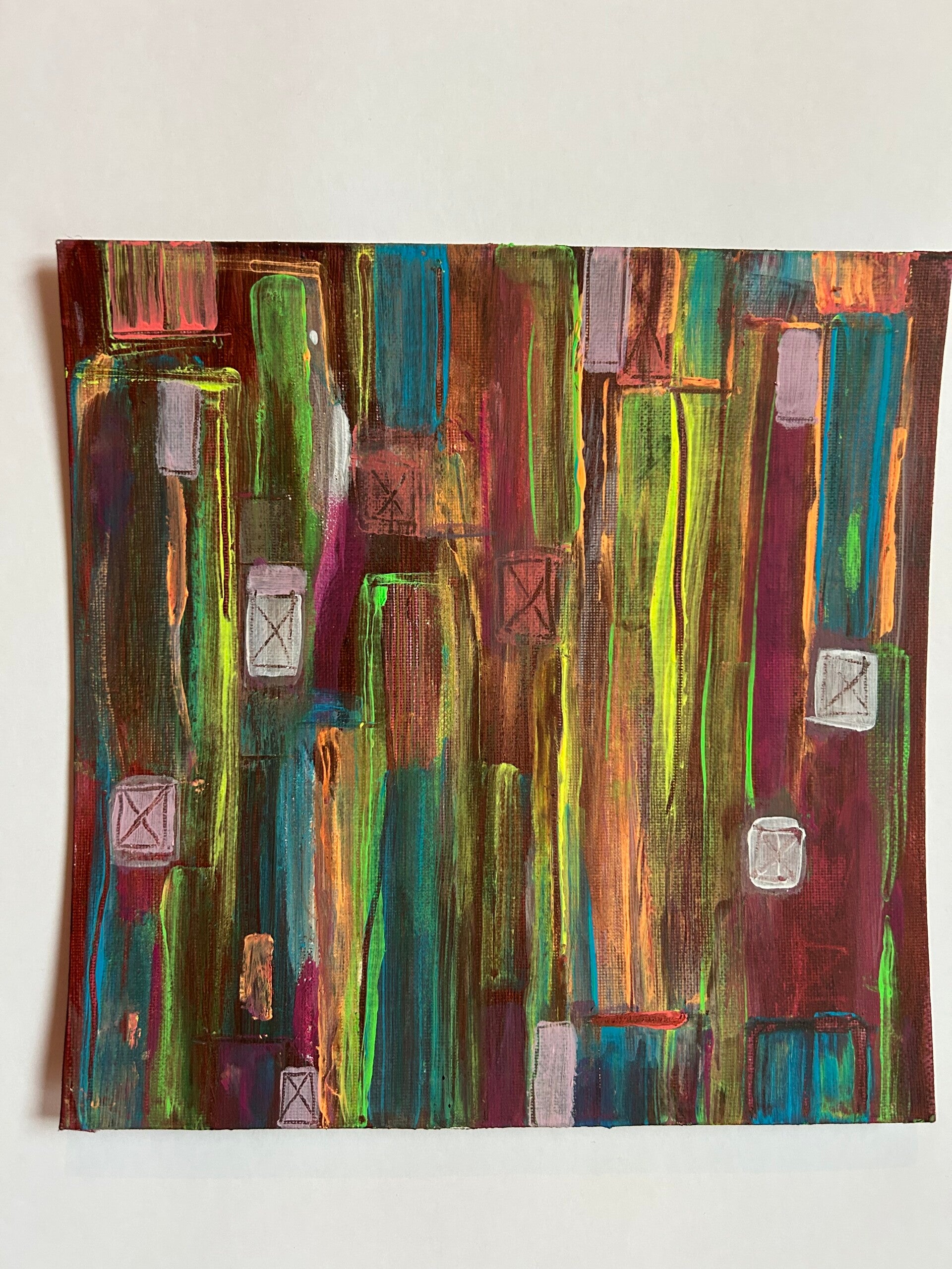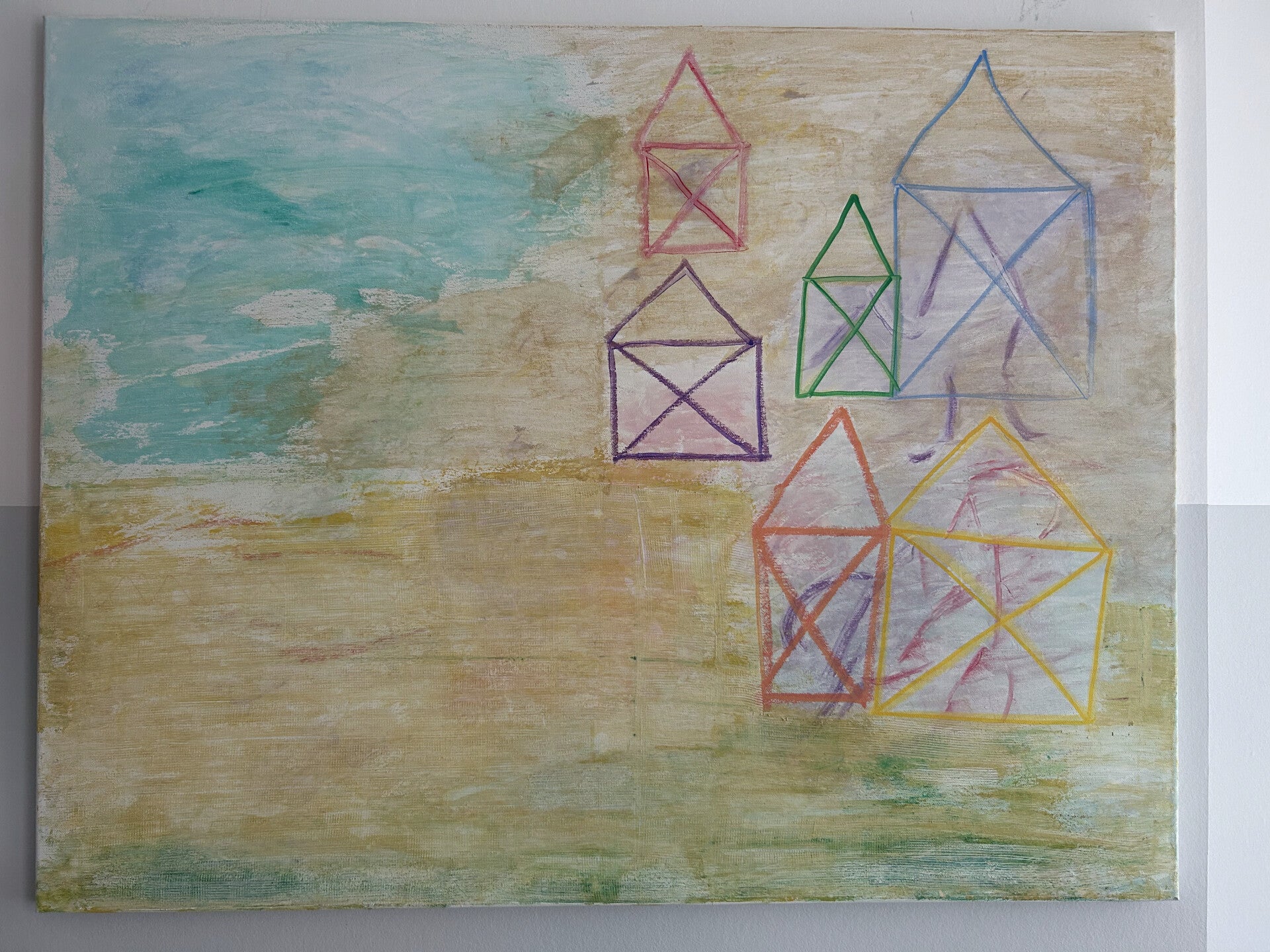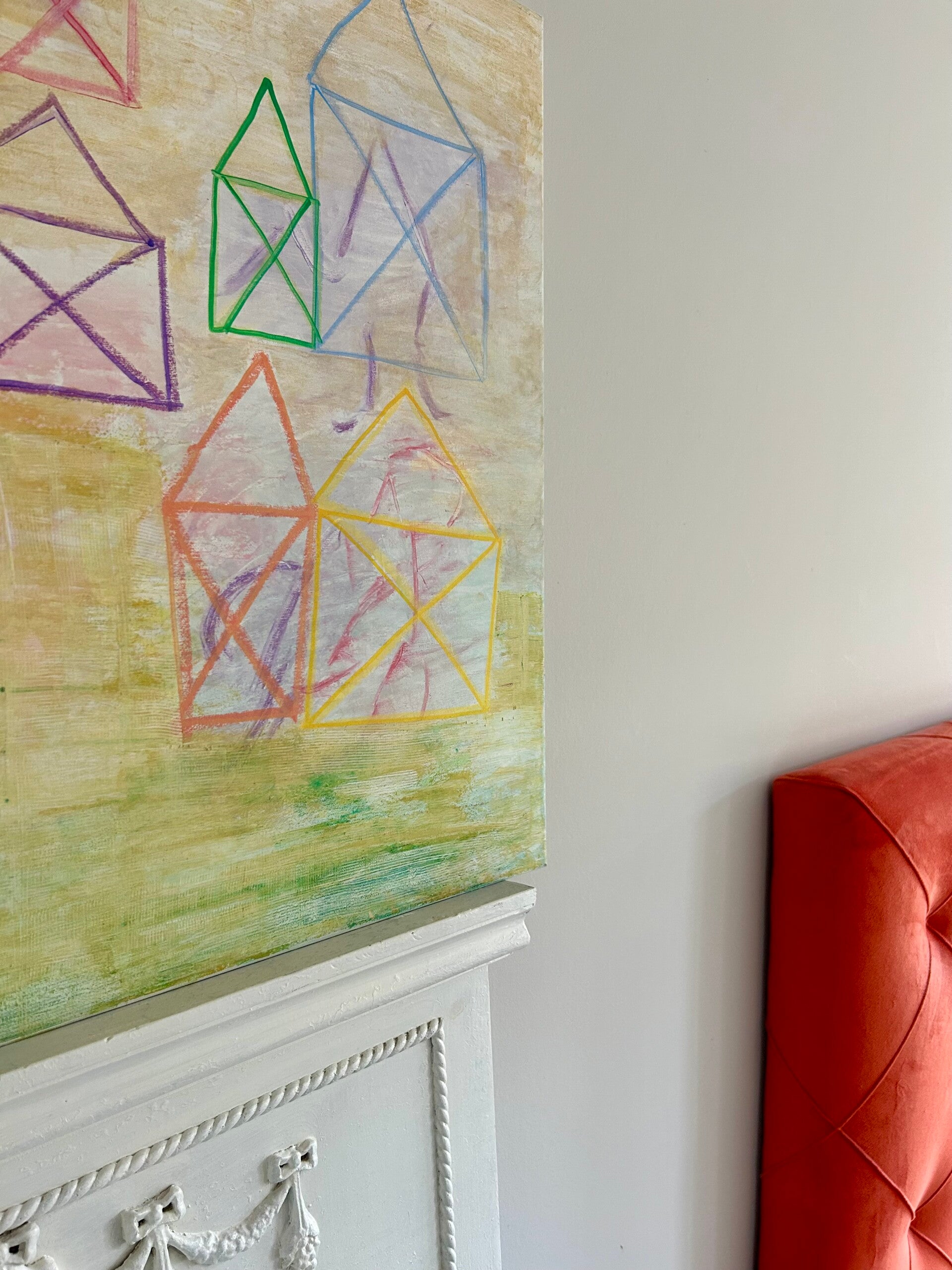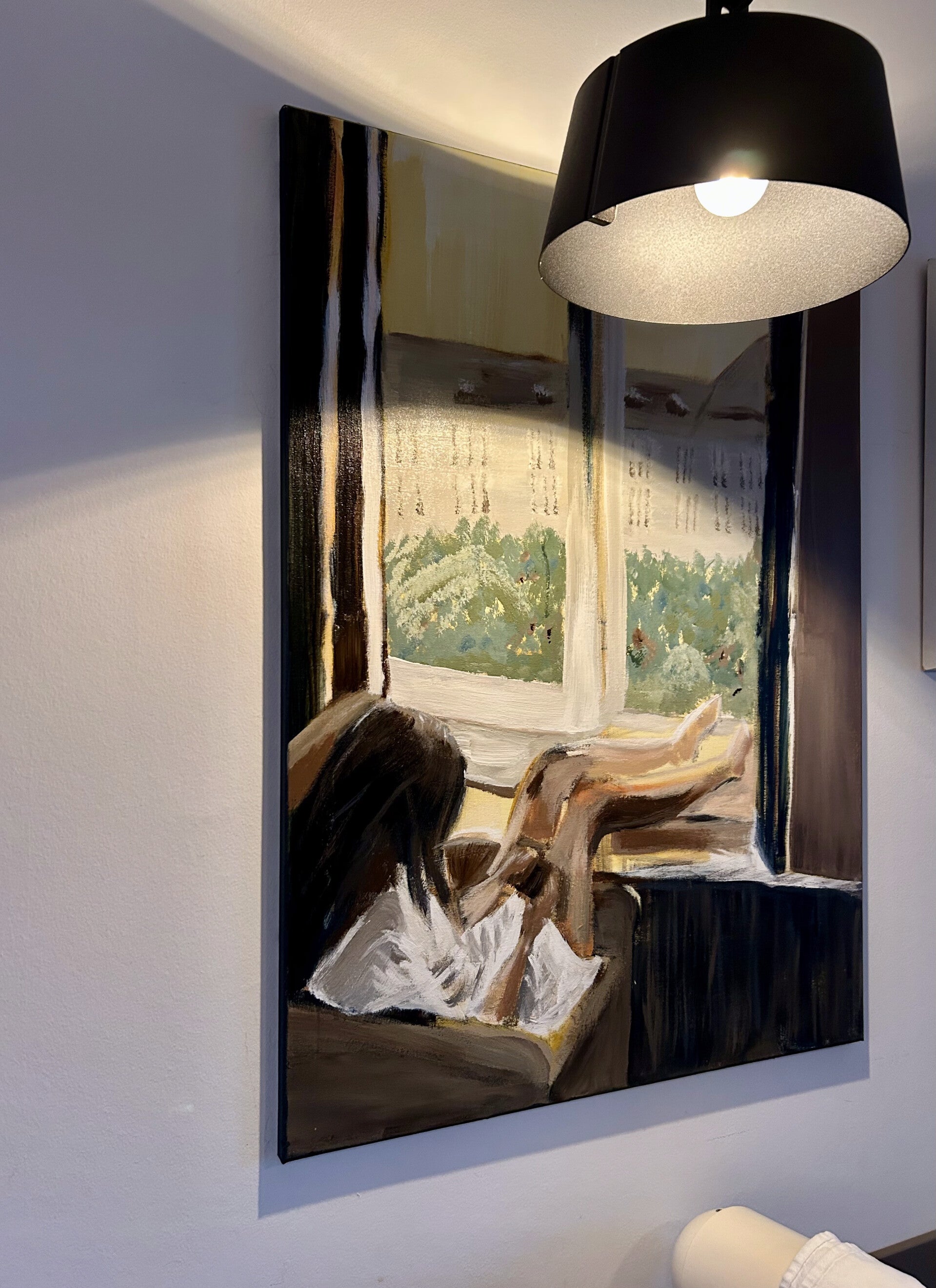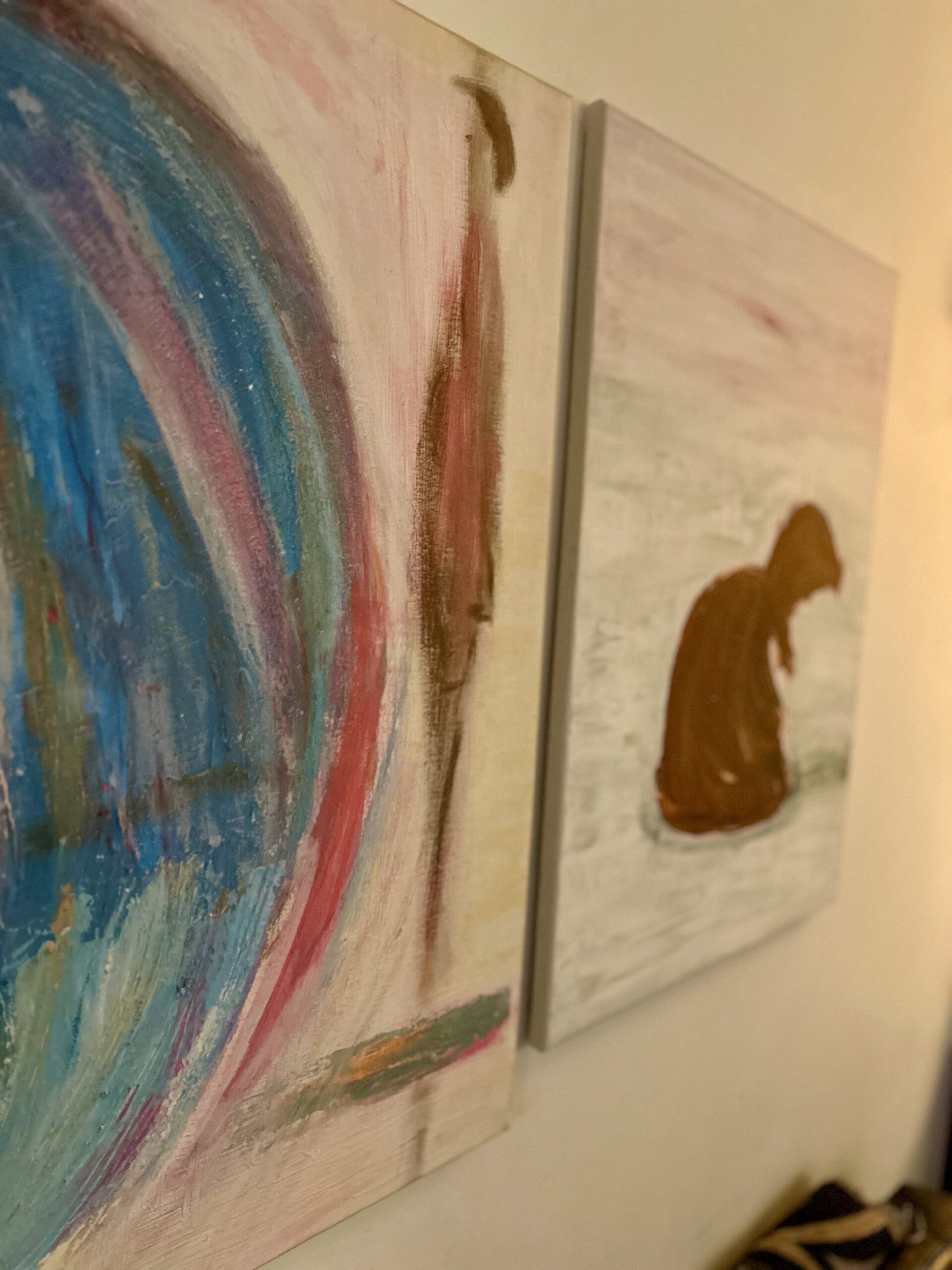 Foto's 'aan de muur' vind je wanneer je verder naar beneden scrollt. Onderaan deze pagina vertel ik je tot slot meer over mijn manier van werken, over wat ik tegenkom wanneer ik schilder. Neem voor meer info of bij interesse gerust contact met mij op