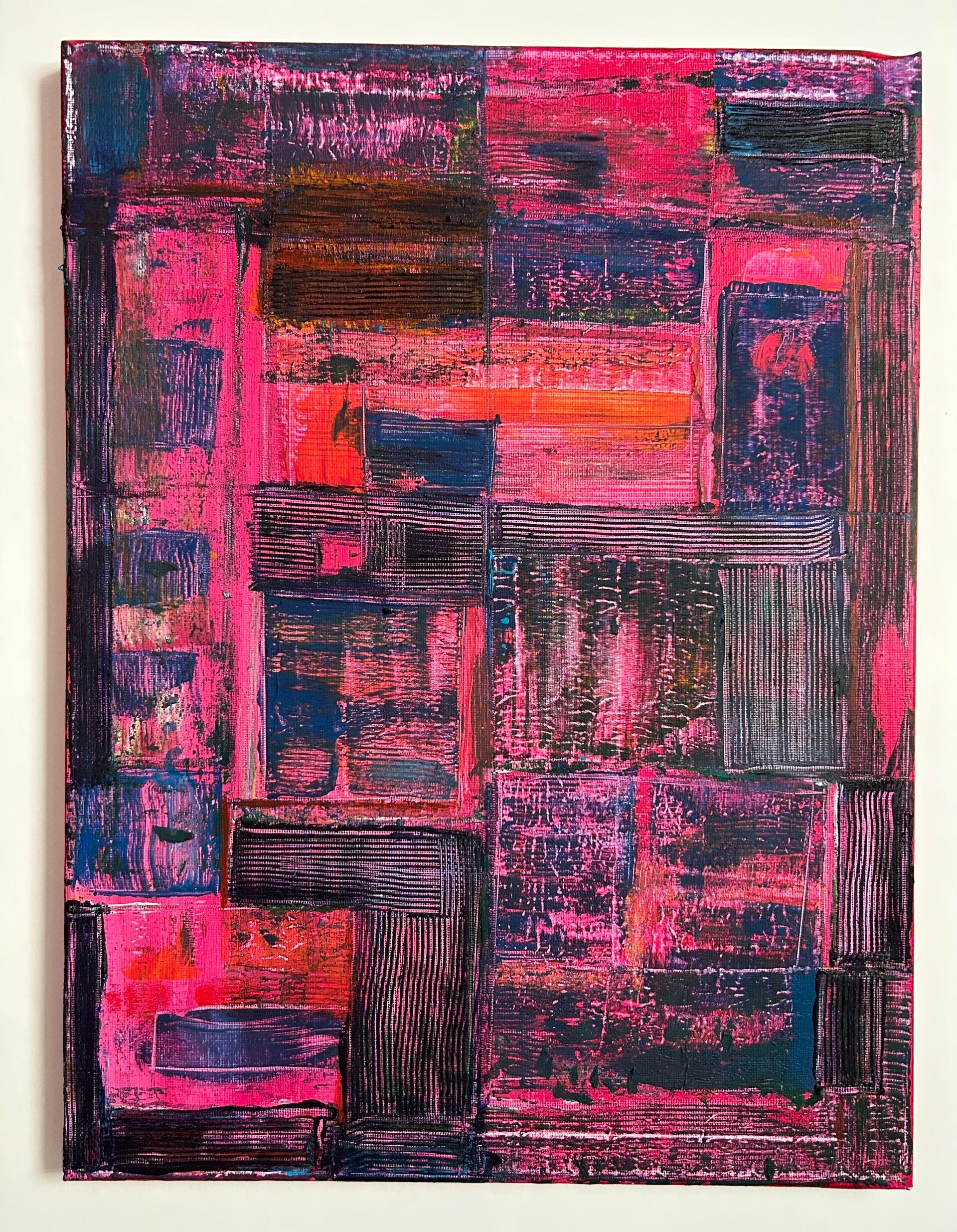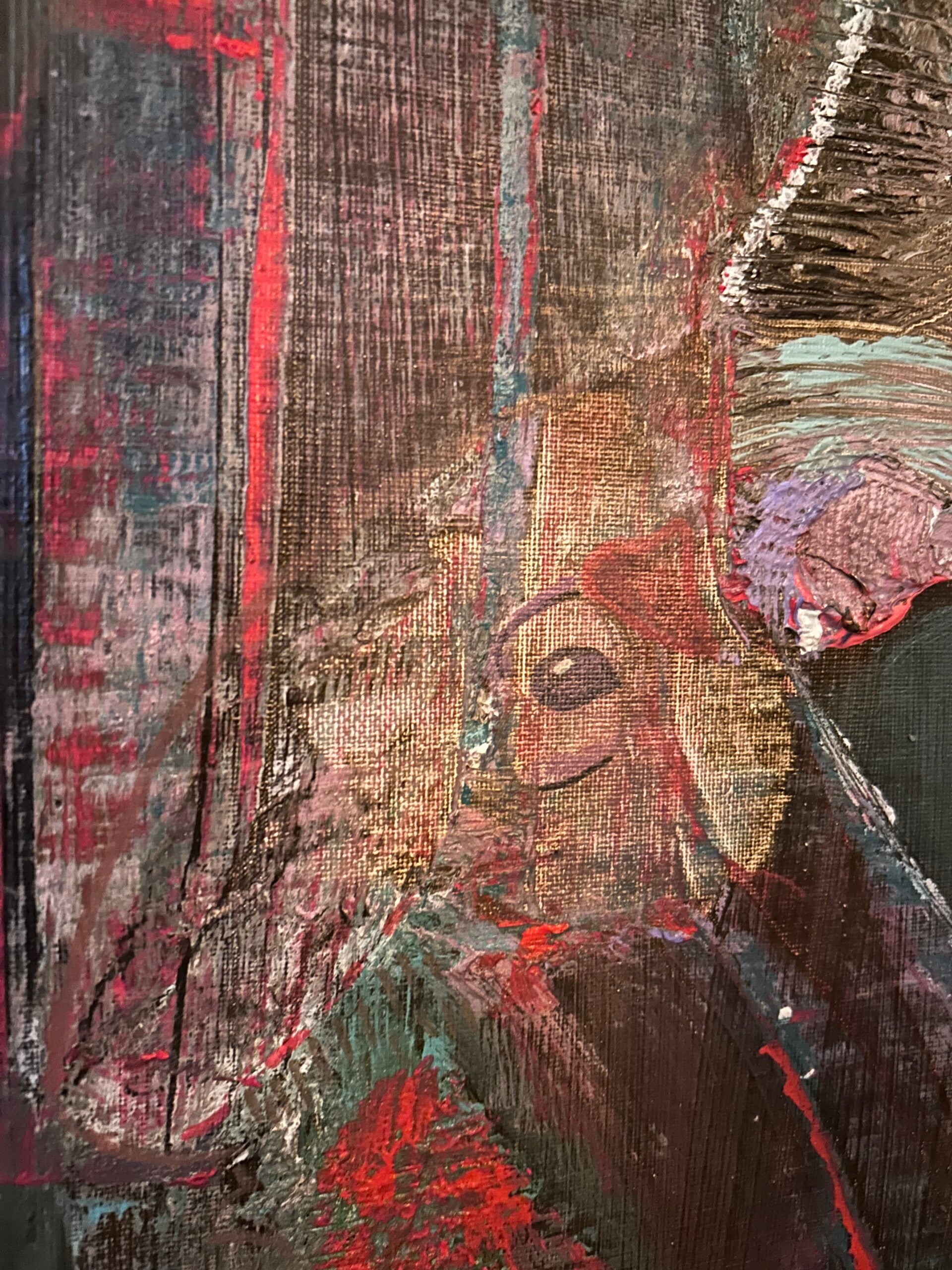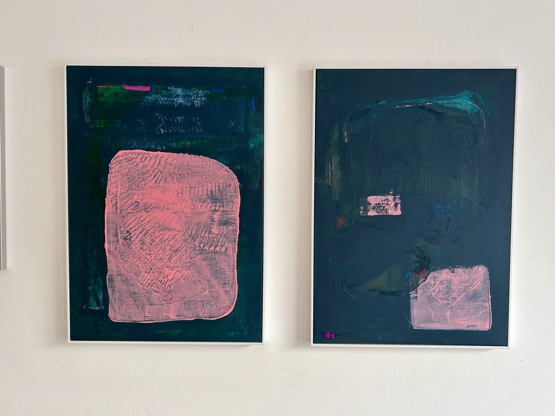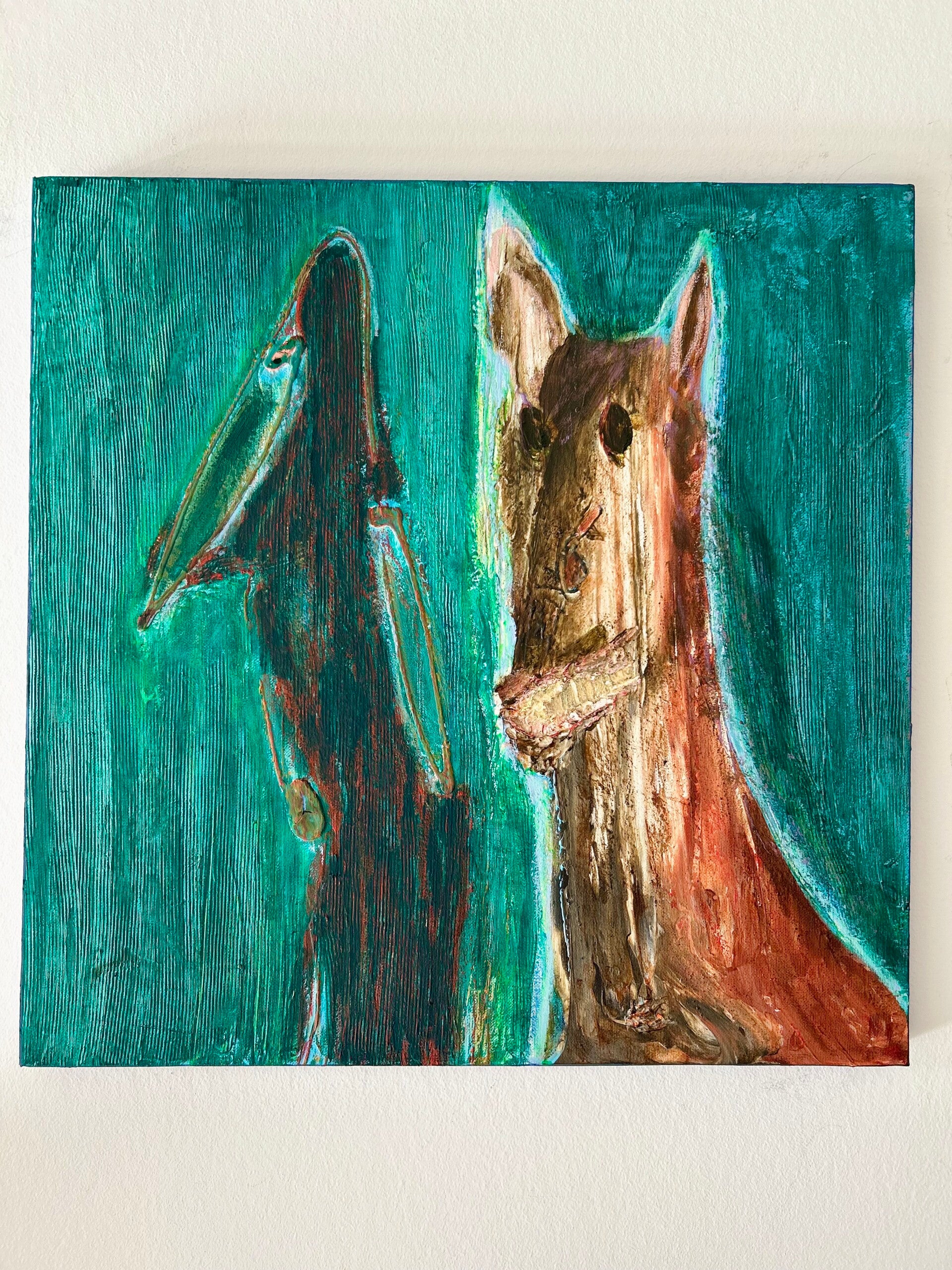 Zien & gezien worden. Jezelf leren kennen via anderen. Inleving en empathie. 'We laveren door het leven, samen en alleen.' Net als in mijn schrijven, is er sprake van een lichte toon. Door gebruik van toegankelijke kleuren, in een sfeer van gezelligheid, ook al speelt er regelmatig een dynamiek van wel of niet in contact willen of kunnen zijn, van escapisme, vervreemding zelfs. Toch blijft het veilig om naar te kijken. Door de regelmatige keuze voor wit en lichte kleuren, weliswaar soms met schurende structuurlagen aangebracht.