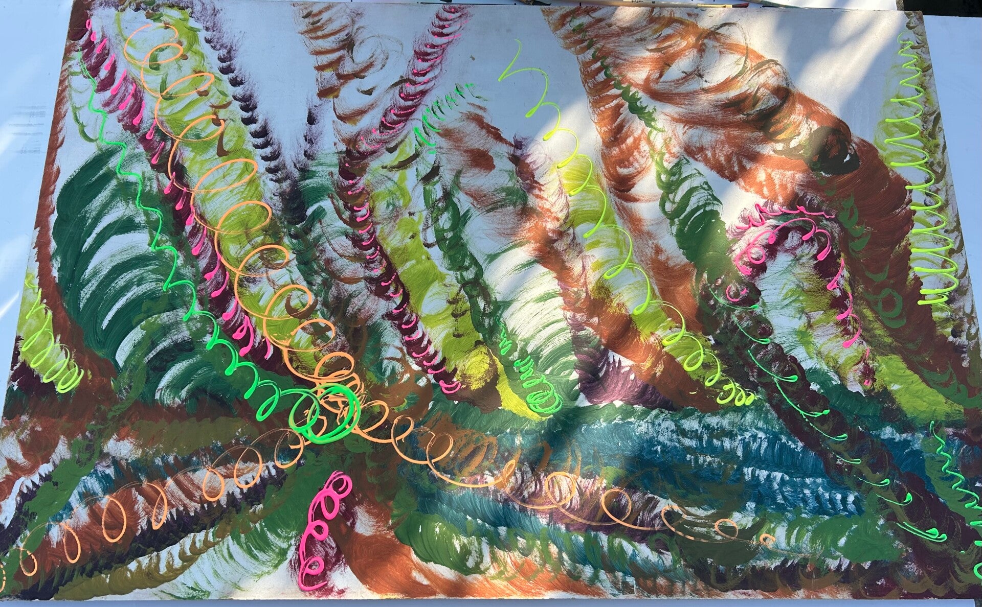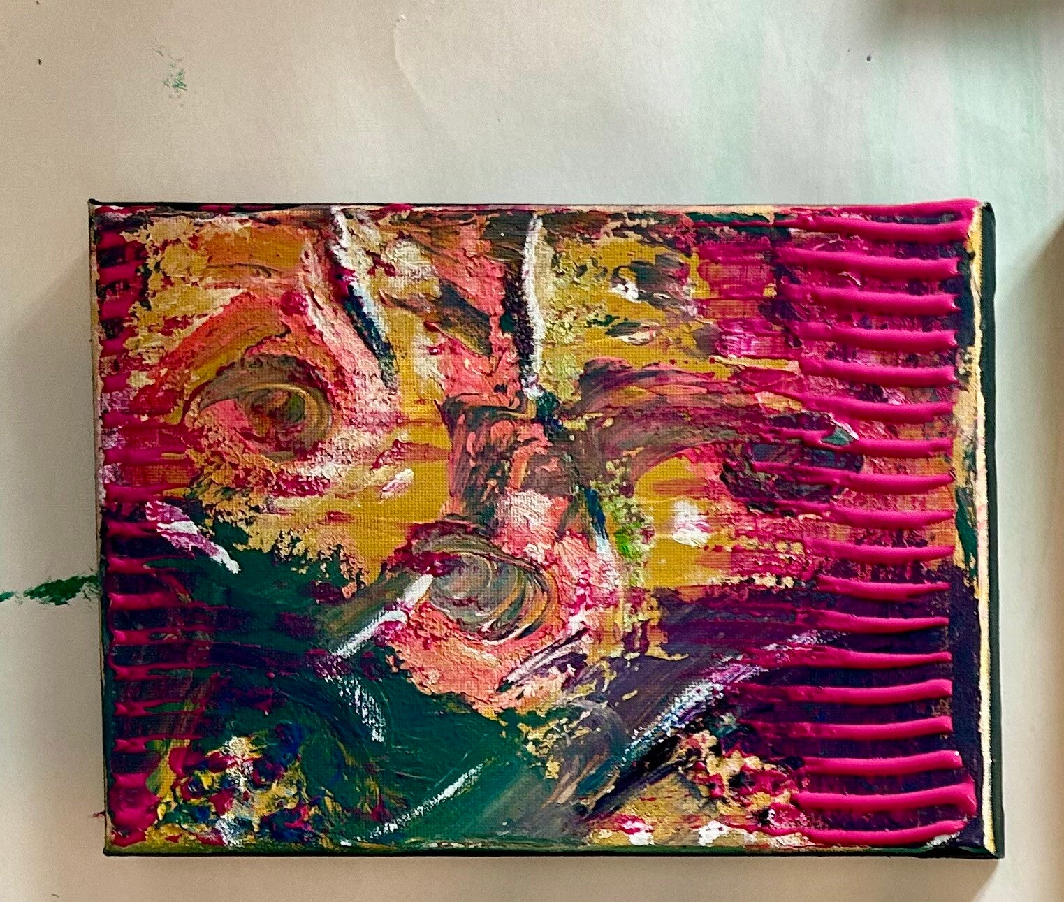 Wat vertel ik dan? Ik volg het materiaal en er ontstaat iets. Soms 'lees' ik het pas na weken, altijd vanuit mijn eigen beleving, binnen mijn thema's.